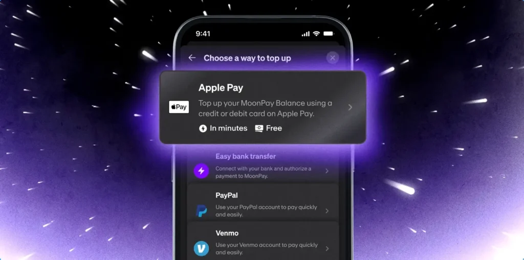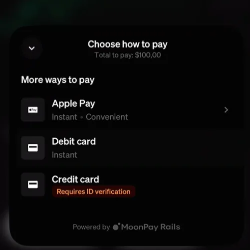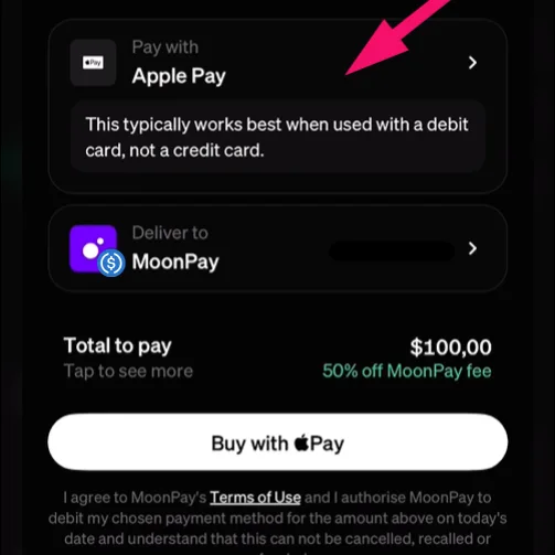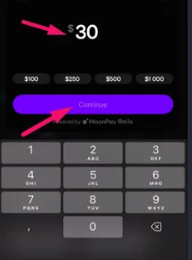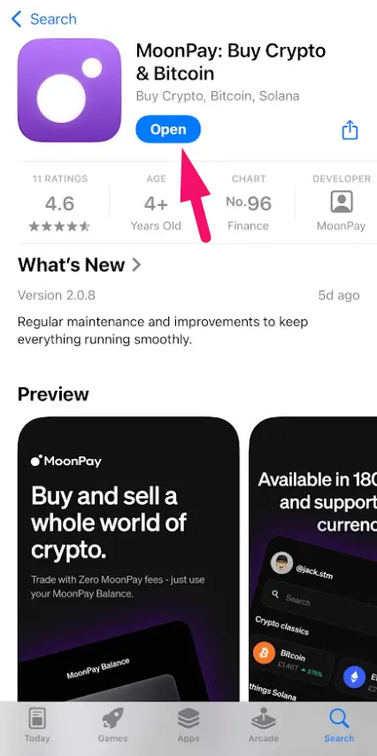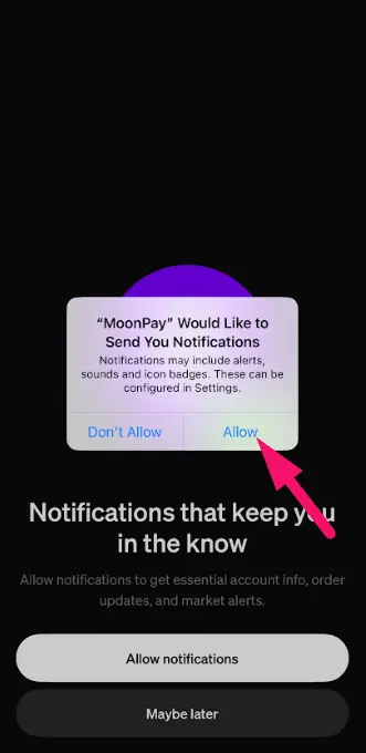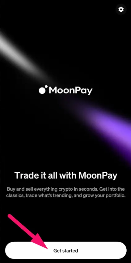 Go to the App store or Google store and download MoonPay app. Open it and press on Get Started.