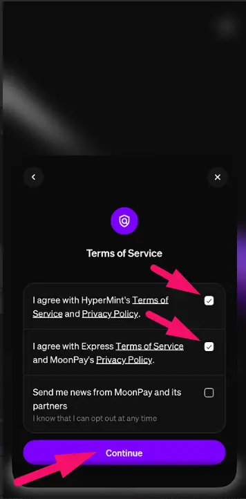 Press on each of to terms and conditions to agree, After that press on Continue.